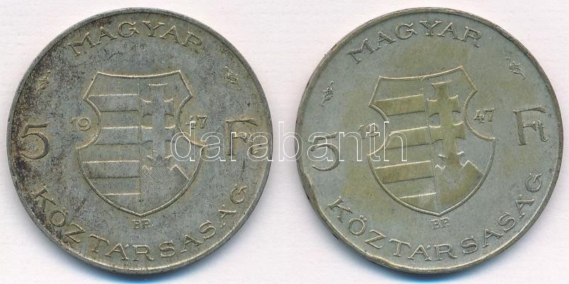1947. 5Ft Ag "Kossuth" (2x) T:2,3 patina, ph. Adamo F8.1