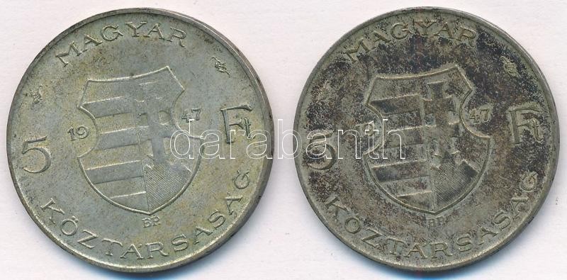 https://www.darabanth.com/en/360-Online-auction/360.0/Numismatics/Hungarian-coins-and-coins-with-Hungarian-mint-marks~2000008/1947-5Ft-Ag-Kossuth-2x-T2-patina-ph-Adamo-F81~II2071940