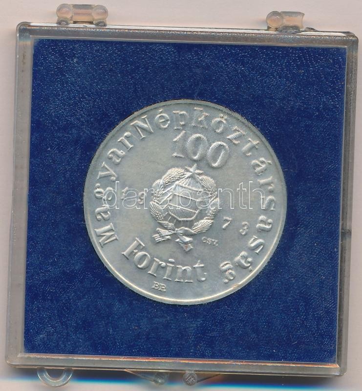 https://www.darabanth.com/en/360-Online-auction/360.0/Numismatics/Hungarian-coins-and-coins-with-Hungarian-mint-marks~2000008/1973-100Ft-Ag-Petofi-Sandor-serult-kek-MNB-muanyag-tokban-TBU-Adamo-EM42~II2071446