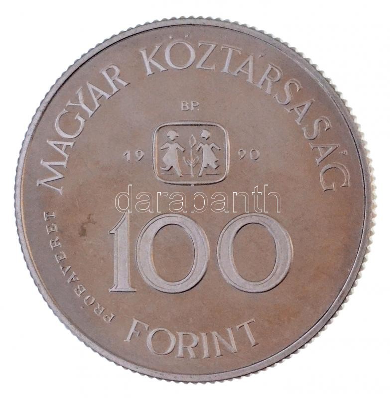 https://www.darabanth.com/en/360-Online-auction/360.0/Numismatics/Hungarian-coins-and-coins-with-Hungarian-mint-marks~2000008/1990-100Ft-Cu-Ni-SOS-Gyermekfalu-jelzett-probaveret-PROBAVERET-felirat-az-elolap-bal-olda~II2076912