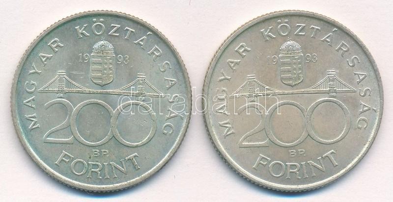 1993. 200Ft Ag "MNB" (2x) T:1-,2
