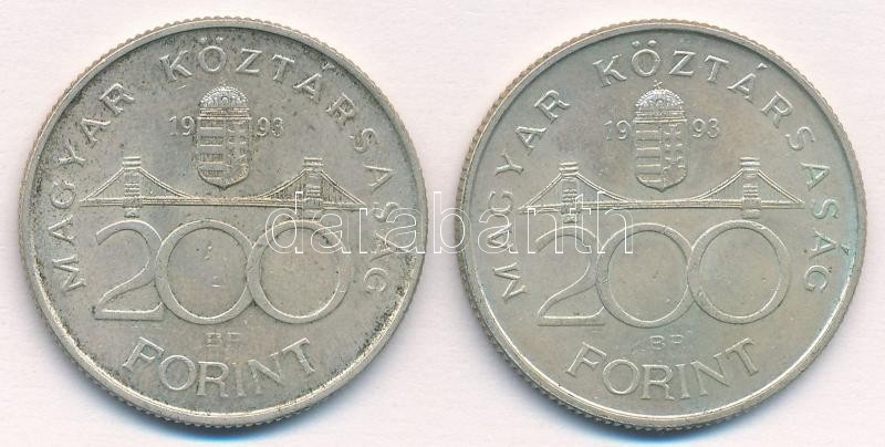 1993. 200Ft Ag "MNB" (2x) T:1-,2 kis patina