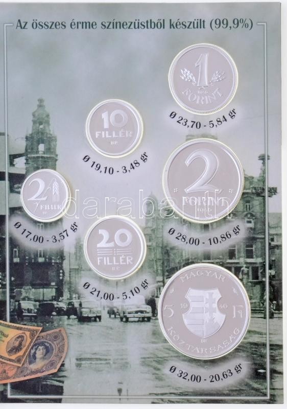 2006. "Mesterdarabok ezüstből 1946" 1946. 2f-5Ft Ag (6xklf) forgalmi sor utánverete eredeti díszcsomagolásban T:PP Hungary 2006. "Silver master pieces 1946" 1946. 2 Fillér - 5 Forint Ag (6xdiff) restrike coin set in original case C:PP Adamo FO1.1