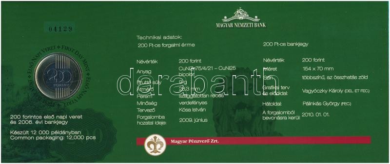 2009. 200Ft elsőnapi veret díszcsomagolásban + 2006. 200Ft "FB" "Búcsú a 200Ft-os bankjegytől" T:I,1