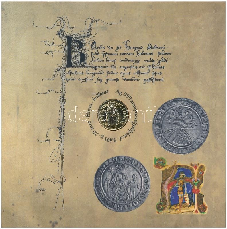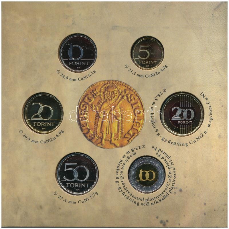 2012. 5Ft-200Ft (6xklf) forgalmi szett "Az első magyar aranyforint" + I. Károly aranyforintjának aranyozott Ag utánverete (3,491g/0.999/20mm) T:PP