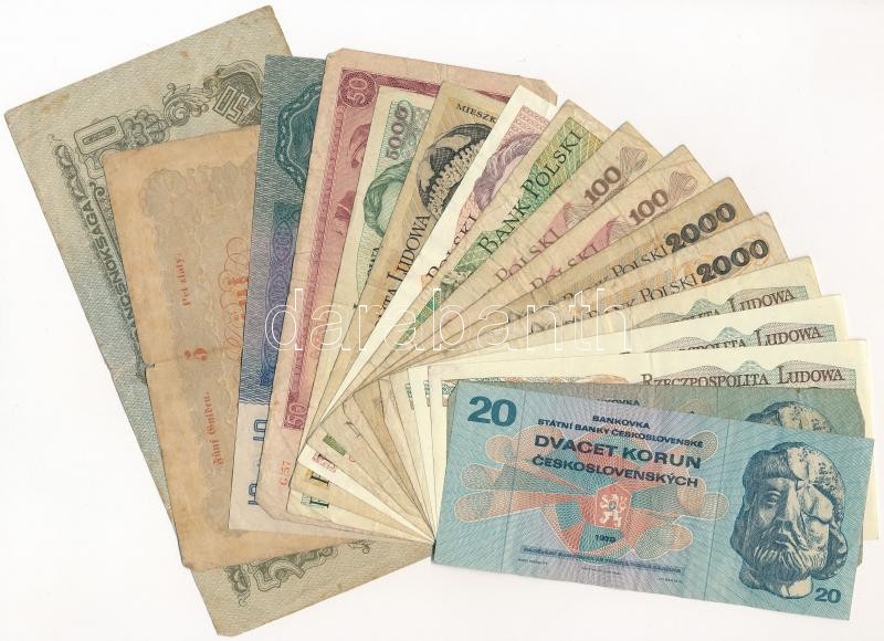 16db-os vegyes magyar és külföldi bankjegy tétel, közte 1848. 5Ft "Kossuth bankó" vörösesbarna T:III,III-