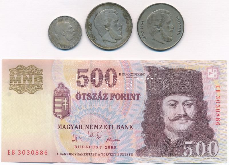Vegyes: 1894. 1K Ag "Ferenc József" + 1947. 5Ft Ag "Kossuth" (2x) + 2006. 500Ft "EB" sorozat T:2,2-,III