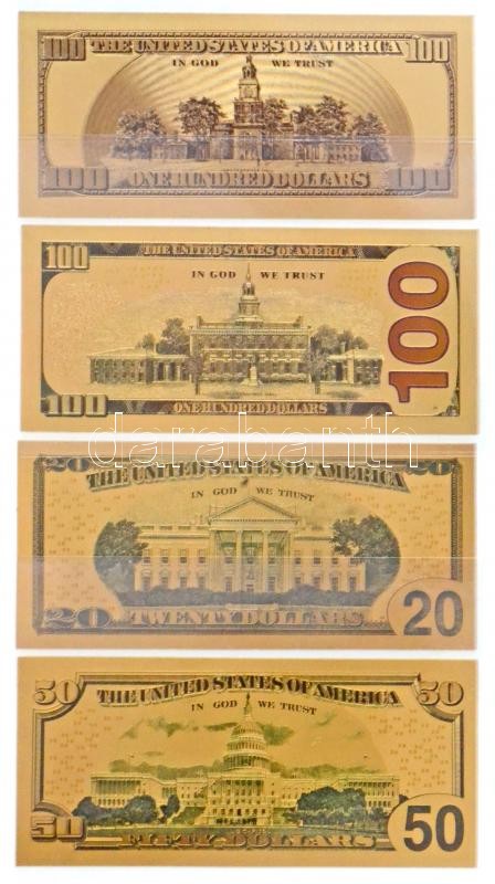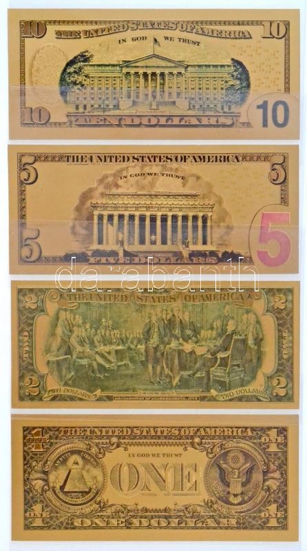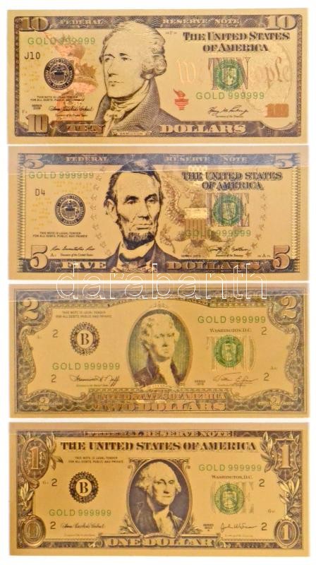 Amerikai Egyesült Államok 1976-2009. 1$-100$ (8x) aranyozott bankjegy replikák T:I USA 1976-2009. 1 Dollar - 100 Dollars (8x) gold plated banknote replicas C:UNC