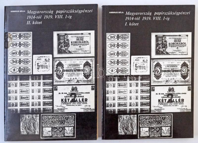 Ambrus Béla: Magyaország papírszükségpénzei 1914-től 1919. VIII. 1-ig.... https://www.darabanth.com/en/360-Online-auction/360.0/Numismatics/Numismatics-Literature~2000002/Ambrus-Bela-Magyaorszag-papirszuksegpenzei-1914-tol-1919-VIII-1-ig-I-es-II-kotet-Mag~II2077988
