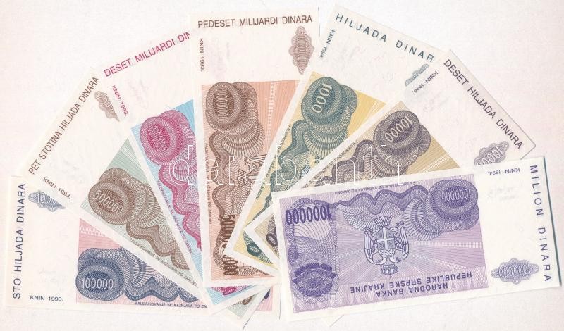 Description: Horvátország / Krajna Szerb Köztársaság 1993-1994. 1000D-50.000.000.000D (7xklf) T:I