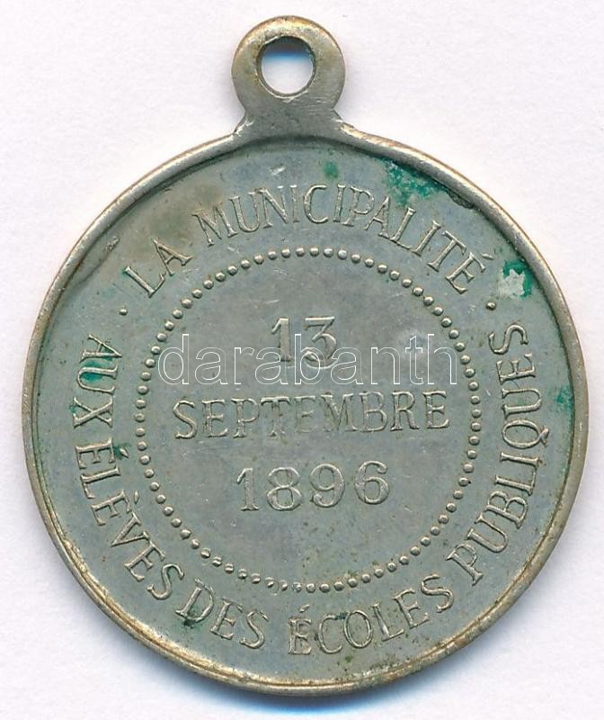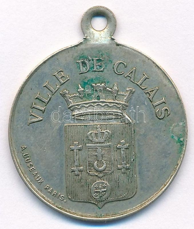 Description: Franciaország 1896. "Ville de Calais" ezüstözött fém emlékérem füllel. Szign.: A. Duseaux Paris (27mm) T:2