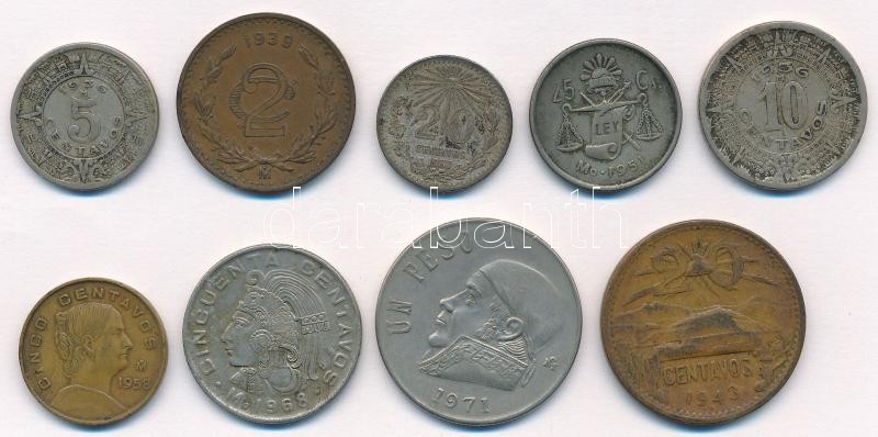 Mexikó 1936-1971. 9db-os fémpénz tétel, közte Ag érme T:vegyes