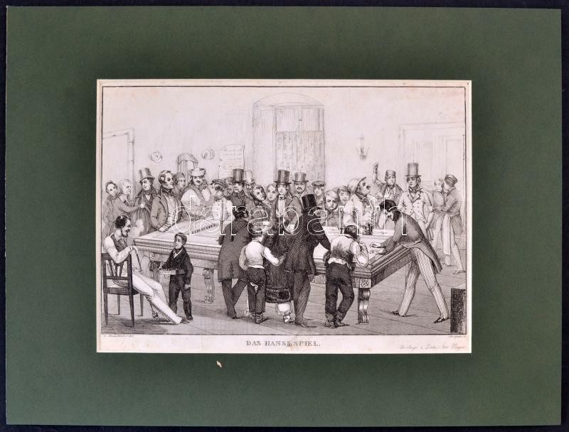 cca 1850 Das Hanslspiel asztali játék. Rézmetszet. 13x22 cm Paszpartuban