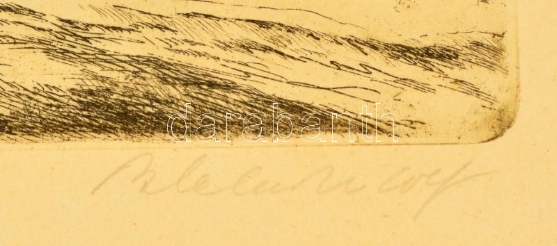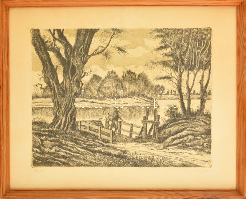 Blahos Rudolf (1917-1986): Tiszapart. Rézkarc, papír, jelzett, üvegeze...