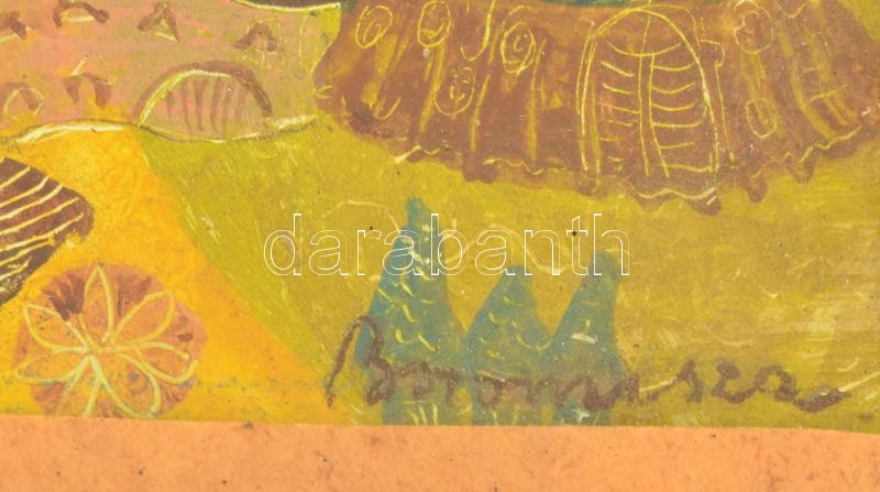 Boromisza jelzéssel: Meseváros. Olaj, farost, üvegezett keretben, 27×2...