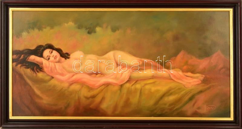 Szepesi Andor (1954-): Akt. Olaj, farost, jelzett, keretben, 40×80 cm