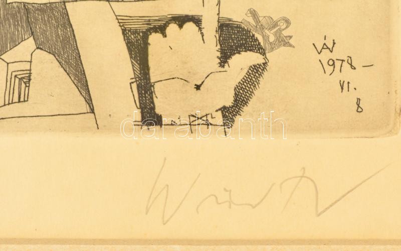 Würtz Ádám (1927-1994): Illusztráció. Rézkarc, papír, jelzett, üvegeze...