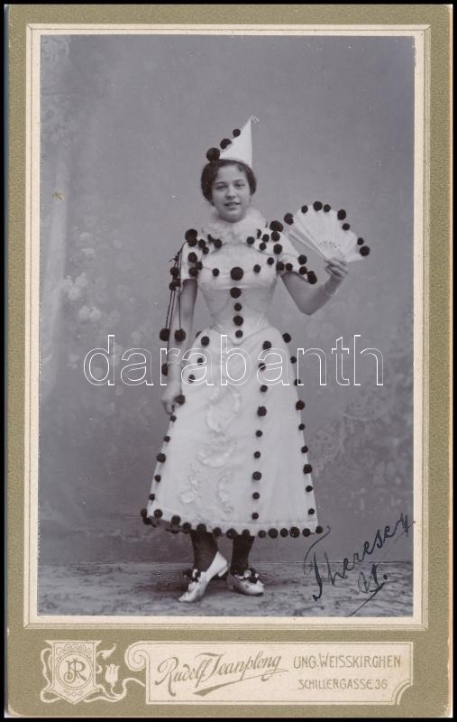1902 Jelmezben, vizitkártya méretű, vintage fotó, 11x6,7 cm