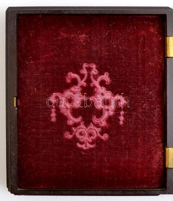 cca 1850 Daguerrotípia dekoratív faragott fa tokkal. 9x10 cm