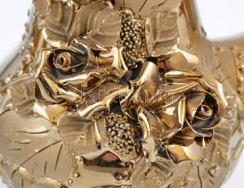 Arany színű kerámia teás hiányos készlet és váza, kosárka, összesen: 1...