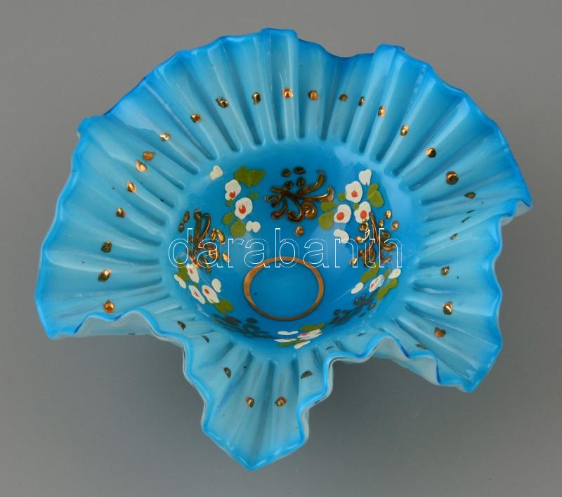 Kézzel festett üveg tálka. d: 18 cm. Hibátlan.