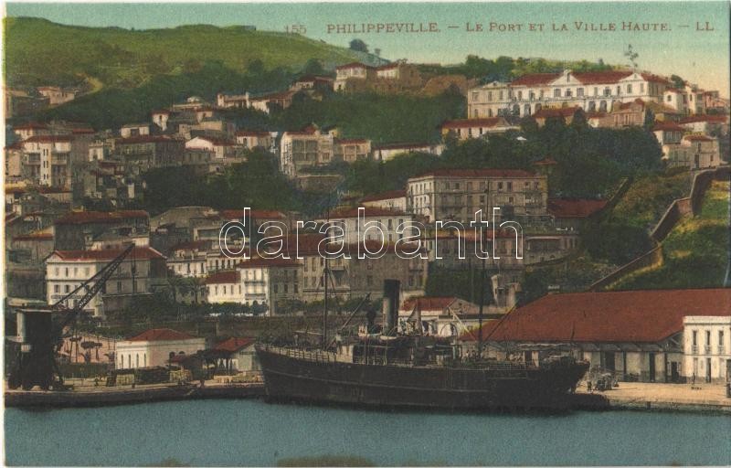 Philippeville, Le port et la Ville Haute / port, harbor, crane, steamship (fl)