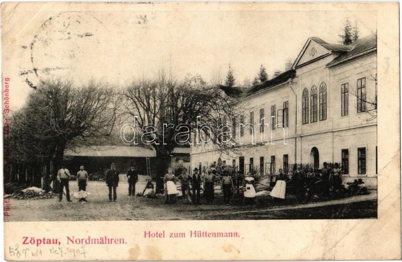 1907 Sobotín, Zöptau (Nordmähren), Hotel zum Hüttenmann. Phot. A. W. Schneider (EB)