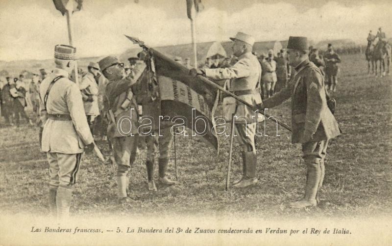 Las Banderas francesas, La Bandera del 30 de Zuavos condecorada en Verdun por el Rey de Italia / French military flag decorated by Victor Emmanuel III, King of Italy in Verdun