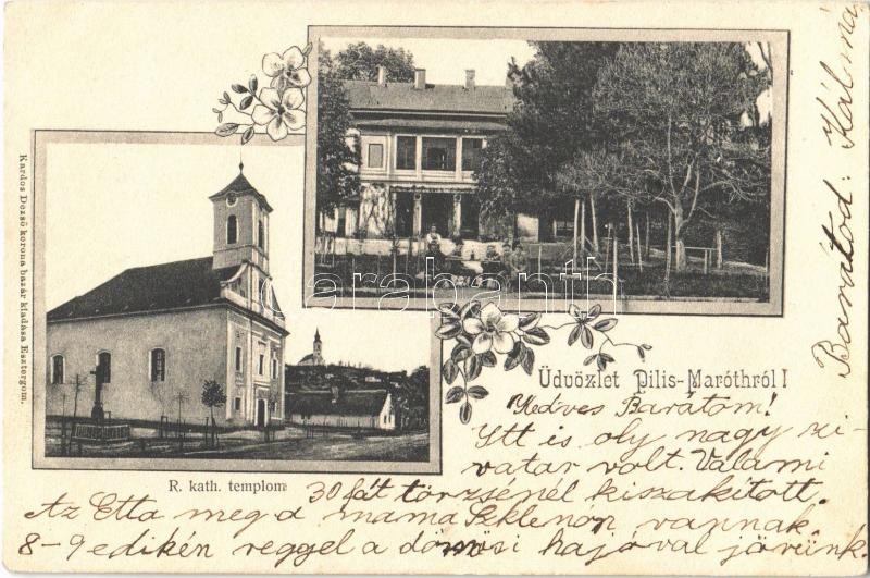 1902 Pilismarót, Pilis-Maróth; Római katolikus templom, Heckenast kastély, kúria. Kiadja Kardos Dezső. Floral