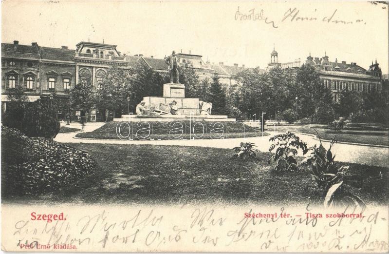1908 Szeged, Széchenyi tér, Tisza Lajos szobor. Pető Ernő kiadása