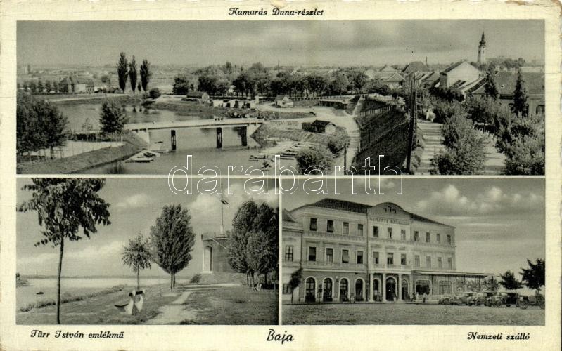 Baja, Kamarás Duna részlet, Nemzeti szálló, Türr István emlékmű, autom...