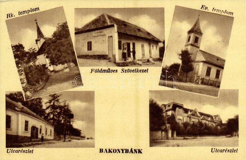 Bakonybánk, Római katolikus templom, Evangélikus templom, utca, Földműves Szövetkezet üzlete