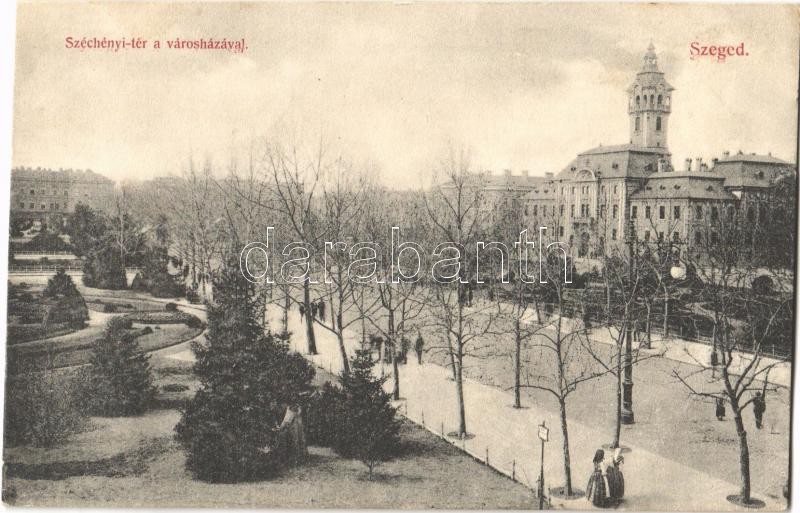 Szeged, Széchenyi tér a városházával. Grünwald Hermann kiadása (EK)