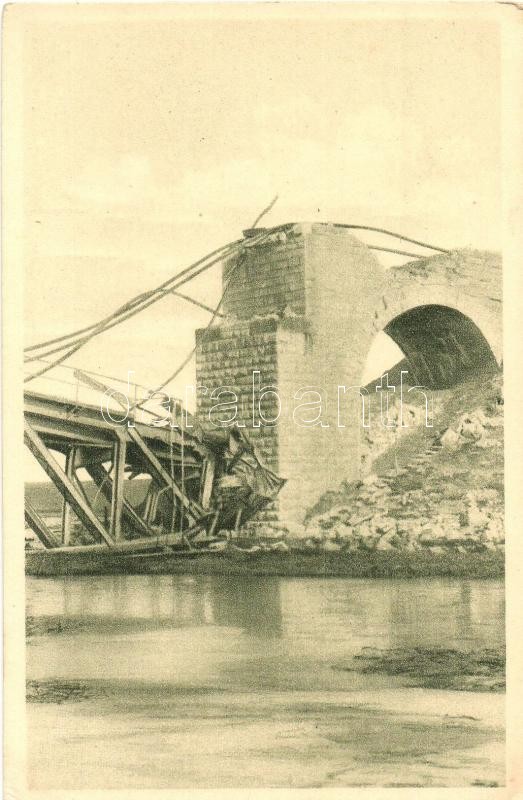 Description: Weltkrieg 1914-1916. Gesprengte Eisenbahnbrücke am Strypa-Fluss / Vyhozeny zeleznicní most na Rece Strype 1915 / WWI Austro-Hungarian K.u.K. military, blown-up bridge over River Strypa. Feldpostkarte