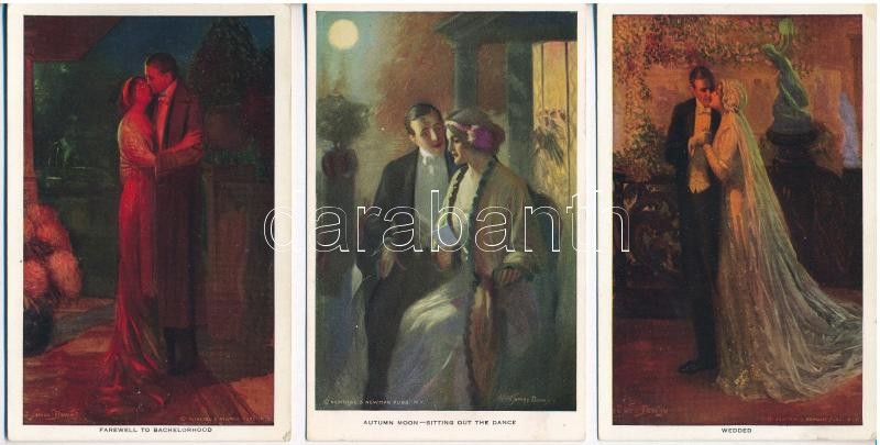 6 db RÉGI használatlan romantikus művész motívumlap: szerelmes pár / 6 unused pre-1945 romantic art motive postcards: love couple