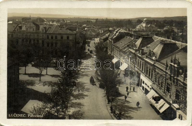 Losonc, Lucenec; Panorama / látkép, üzletek, izraelita templom, zsinag...