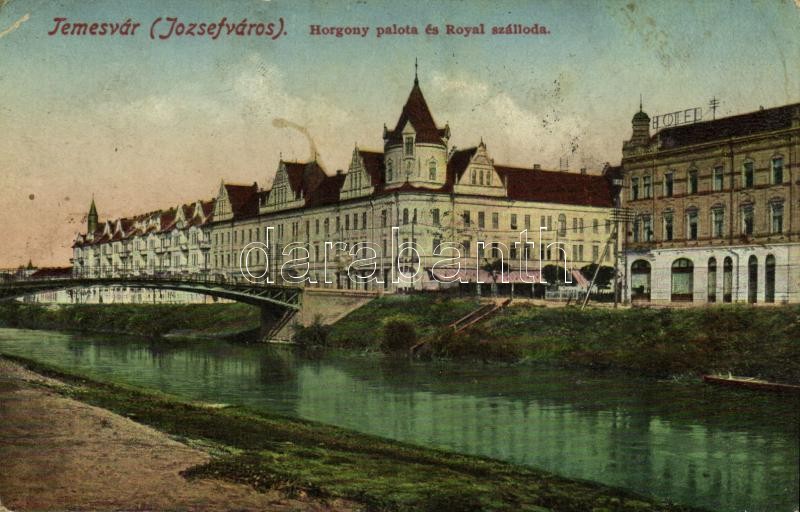 Temesvár, Timisoara; Józsefváros, Horgony palota és Royal szálloda, hí... https://www.darabanth.com/en/360-Online-auction/360.0/Postcards/Transylvania~1000006/Temesvar-Timisoara-Jozsefvaros-Horgony-palota-es-Royal-szalloda-hid-Iosefin-tenement-pa~II2069811