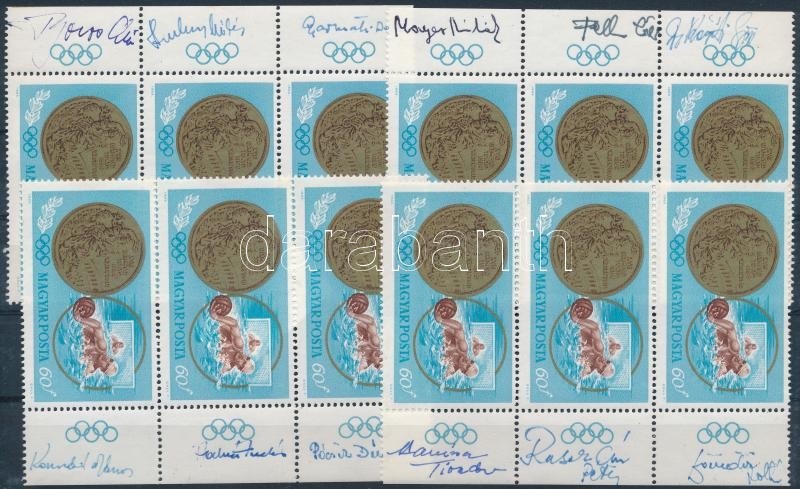 1964 Tokiói Olimpiai bélyegek rajtuk az olimpiai bajnok magyar vizilabda csapat tagjainak aláírásával 12 db