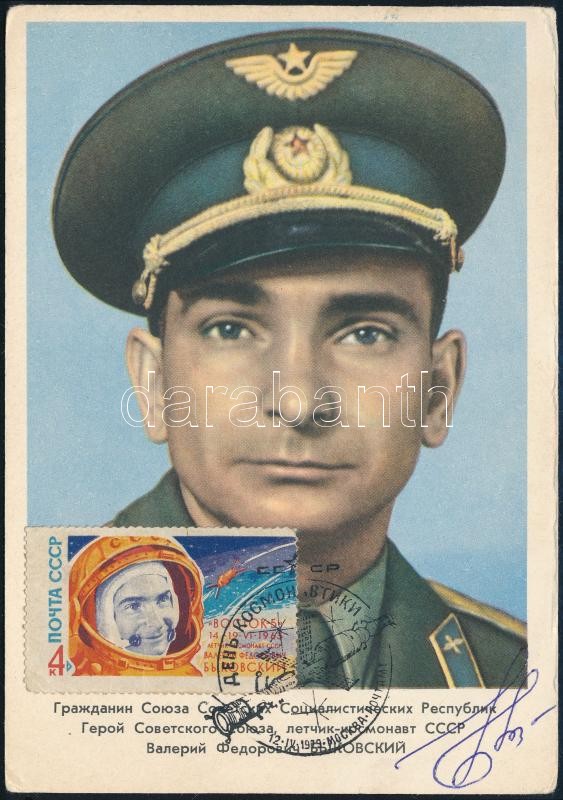Valerij Bikovszkij (1934- ) szovjet űrhajós aláírásai levelezőlapon /