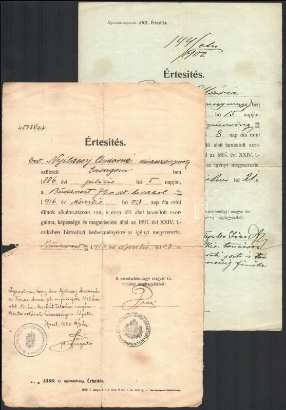 1902-1959 7 db postai irat (pl. Magyar Postaüzemi Szabványok Gyűjtemén...