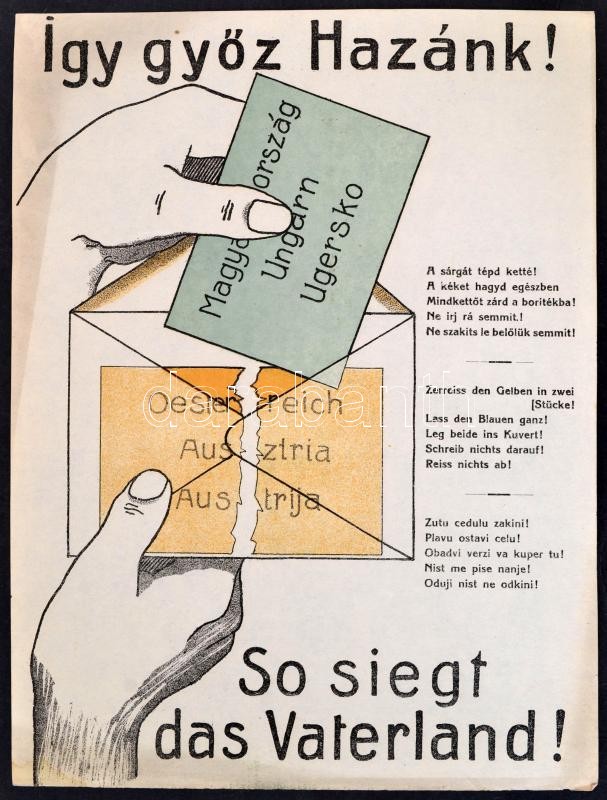 1921 "Így győz Hazánk!" színes propaganda plakát a Soproni n... https://www.darabanth.com/en/361-Online-auction/361.0/Art-and-other-collectibles/Posters~500034/1921-Igy-gyoz-Hazank-szines-propaganda-plakat-a-Soproni-nepszavazas-idejebol-litografi~II2085615