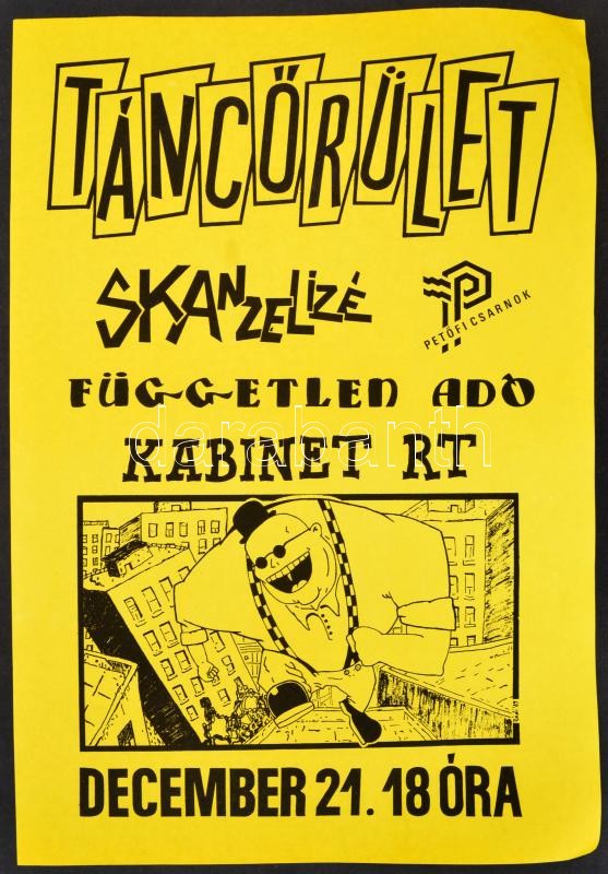 1989 Rádi Sándor (?-?): Táncőrület, Petőfi Csarnok 1989. dec. 21., Ska... https://www.darabanth.com/en/361-Online-auction/361.0/Art-and-other-collectibles/Posters~500034/1989-Radi-Sandor-Tancorulet-Petofi-Csarnok-1989-dec-21-Skanzelize-Fuggetlen-Ado~II2079098