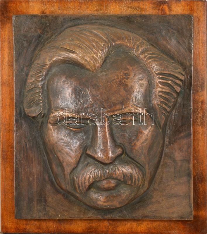 Jelzés nélkül: Móricz Zsigmond fali kép, bronz fa táblán, 29×26 cm