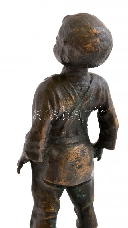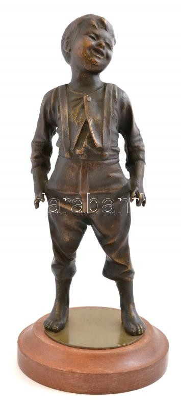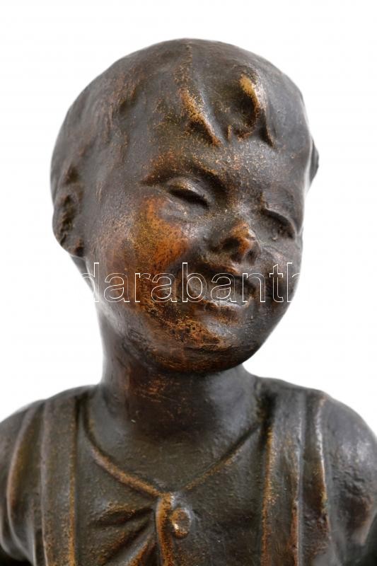Jelzés nélkül: Mosolygó kisfiú, bronz, fa talapzaton, m: 28 cm