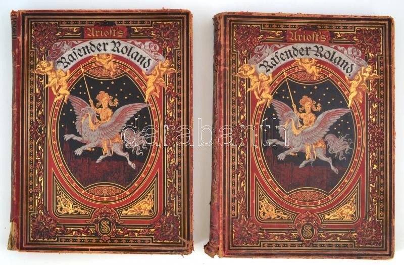 [Ludovico Ariosto]: Ariost's Rasender Roland. I-II. köt. Gustav Doré. Breslau, é.n.. S. Schottlaender. Német nyelven. Kiadói aranyozott, festett egészvászon-kötés, kopott borÃtóval, sérült gerinccel és kötéssel, a II. kötet elülsÅ‘ kötéstáblája sérült, a hátsó kötéstáblája levált és az utolsó lap sérült, rossz állapotban.