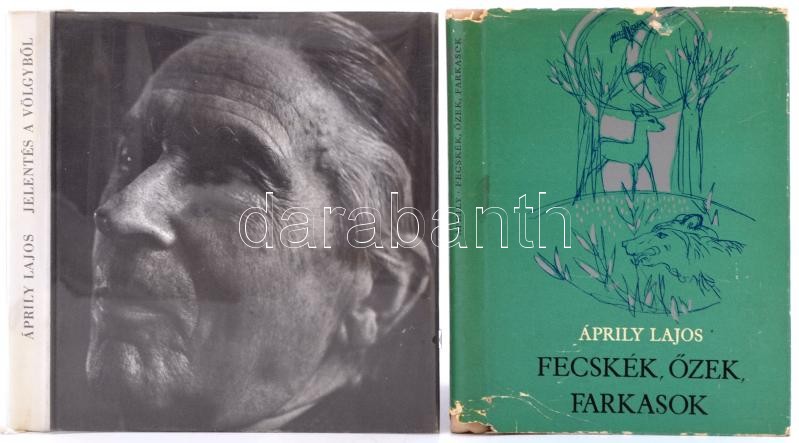 Áprily Lajos 2 db műve, első kiadások: Fecskék, őzek, farkasok. Szántó Piroska rajzaival. Bp., 1965, Móra. Első kiadás. Kiadói félvászon-kötés, kiadói kissé szakadt papír védőborítóban. Jelentés a völgyből. Bp., 1965, Magvető. Kiadói illusztrált egészvászon-kötés, kiadói műanyag védőborítóban.