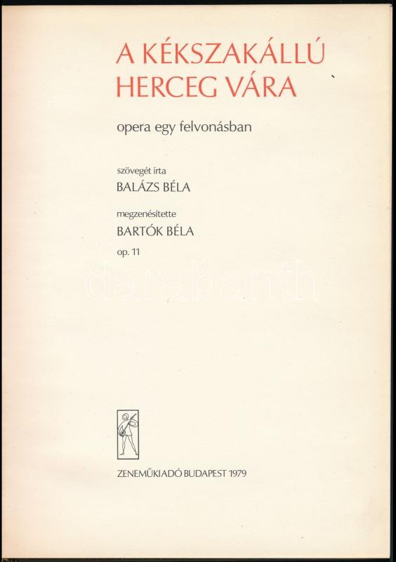 Balázs Béla-Bartók Béla: A kékszakállú herceg vára. Opera egy felvonás... https://www.darabanth.com/en/361-Online-auction/361.0/Books/Books-Other-rarities~1000020/Balazs-Bela-Bartok-Bela-A-kekszakallu-herceg-vara-Opera-egy-felvonasban-Bp-1979-ZenemC5~II2063929