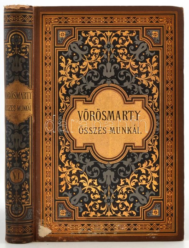 Description: Vörösmarty összes munkái. VI. kötet. Rendezte és jegyzetekkel kísérte Gyulai Pál. Bp., 1885, Méhner Vilmos. Kiadói aranyozott egészvászon-kötés, aranyozott lapélekkel, kissé kopott borítóval, kissé sérült gerinccel, kissé sérült kötéssel.
