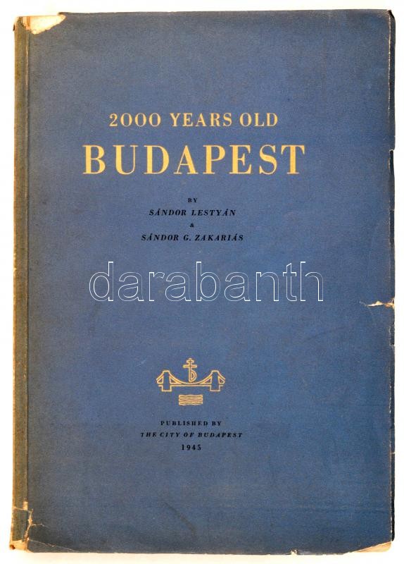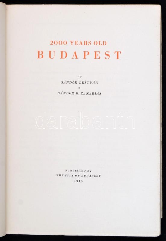Lestyán, Sándor-Zakariás G. Sándor: 2000 years old Budapest. Ford.: Pohárnok, Z. Bp.,1945, The City of Budapest. Angol nyelven. Fekete-fehér fotókkal és egy kétoldalas színes illusztrációval. Kiadói papírkötésben, a borítón kis szakadásokkal.