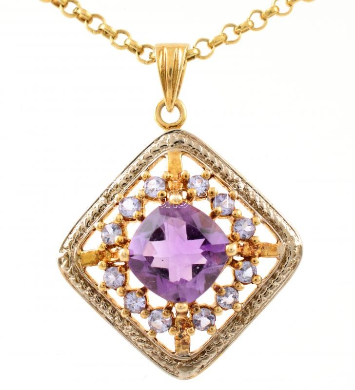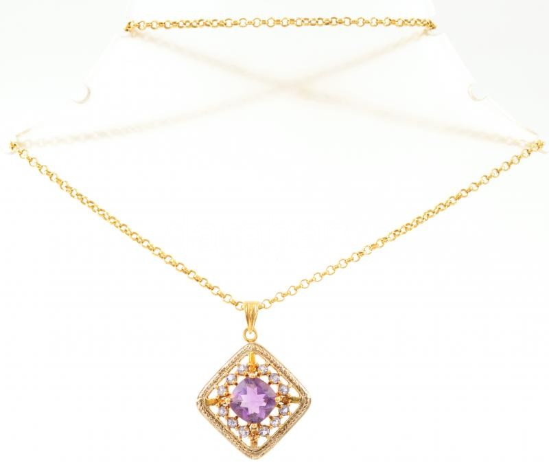 Ezüst nyakék. Tűzaranyozott láncon ametiszt kő díszítéssel. Jelzett. 1...